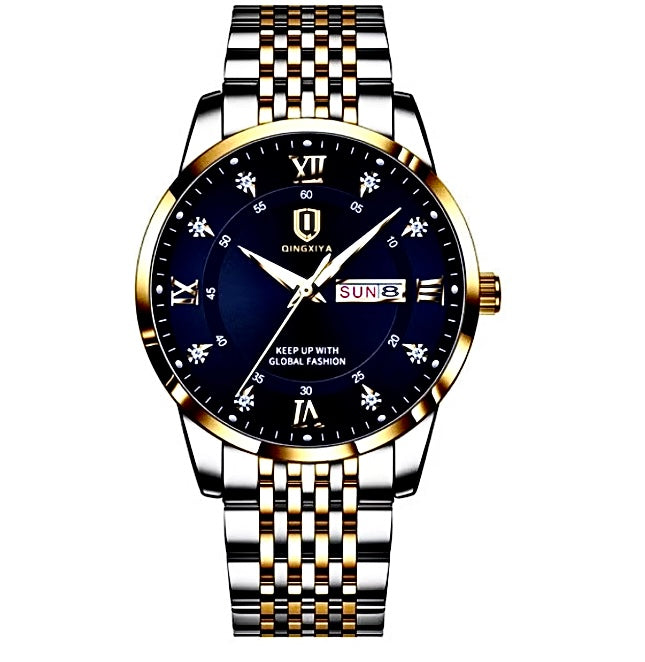 - Pulseira de Aço Inox em Dois Tons: Um design moderno e luxuoso que combina com qualquer estilo.